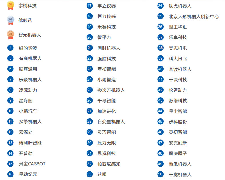 宇樹(shù)科技 匯川技術(shù) 優(yōu)必選 埃斯頓 越疆科技 珞石機(jī)器人 智元機(jī)器人 埃夫特 節(jié)卡 海康機(jī)器人 千巡科技 遨博智能 小鵬汽車(chē) 綠的諧波 凱爾達(dá) 九號(hào)公司